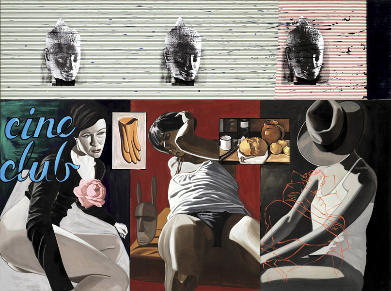 With All Due Respect Sir, We Need Modesty Blaise, 2009. Oil on linen and silkscreen on fabric. 96 x 124-1/4 inches. All images © David Salle/VAGA at Artists Rights Society (ARS), NY. For permissions and requests see contact page. >