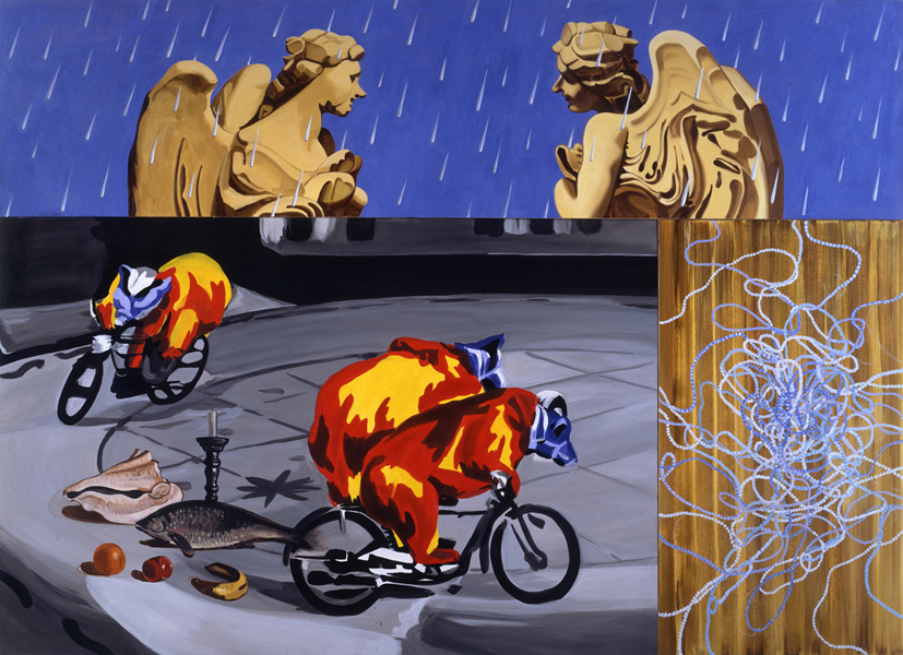 Angels in the Rain, 1998. Oil and acrylic on canvas and linen. 96 x 132 inches. All images © David Salle/VAGA at Artists Rights Society (ARS), NY. For permissions and requests see contact page. >
