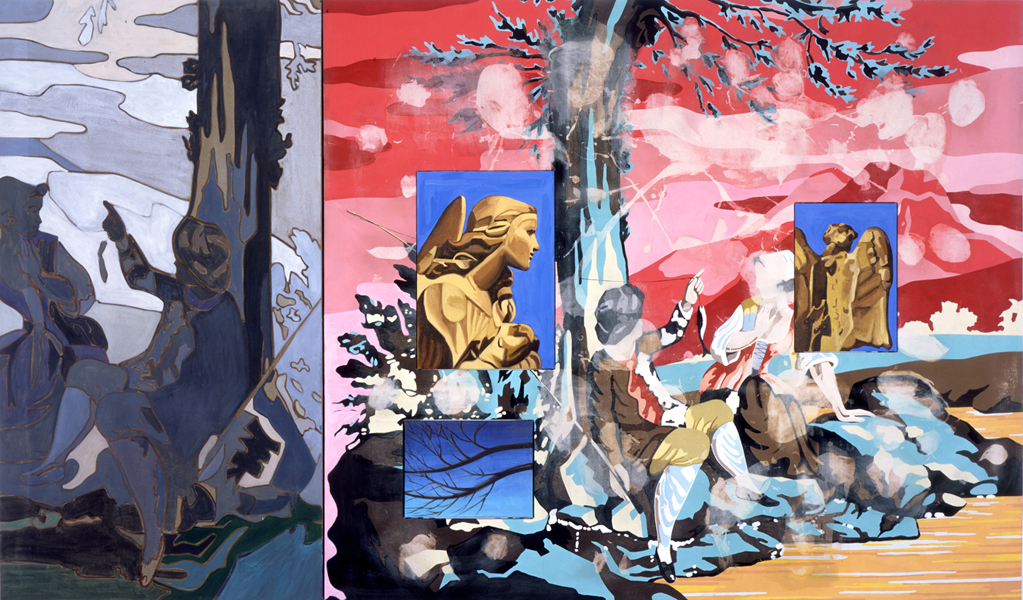Silhouette, 2000. Oil and acrylic on canvas and linen. 74 x 126 inches. All images © David Salle/VAGA at Artists Rights Society (ARS), NY. For permissions and requests see contact page. >