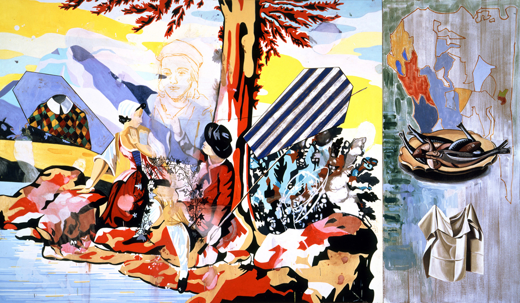 The Emperor, 2000. Oil and acrylic on canvas and linen. 84 x 147 inches. All images © David Salle/VAGA at Artists Rights Society (ARS), NY. For permissions and requests see contact page. >