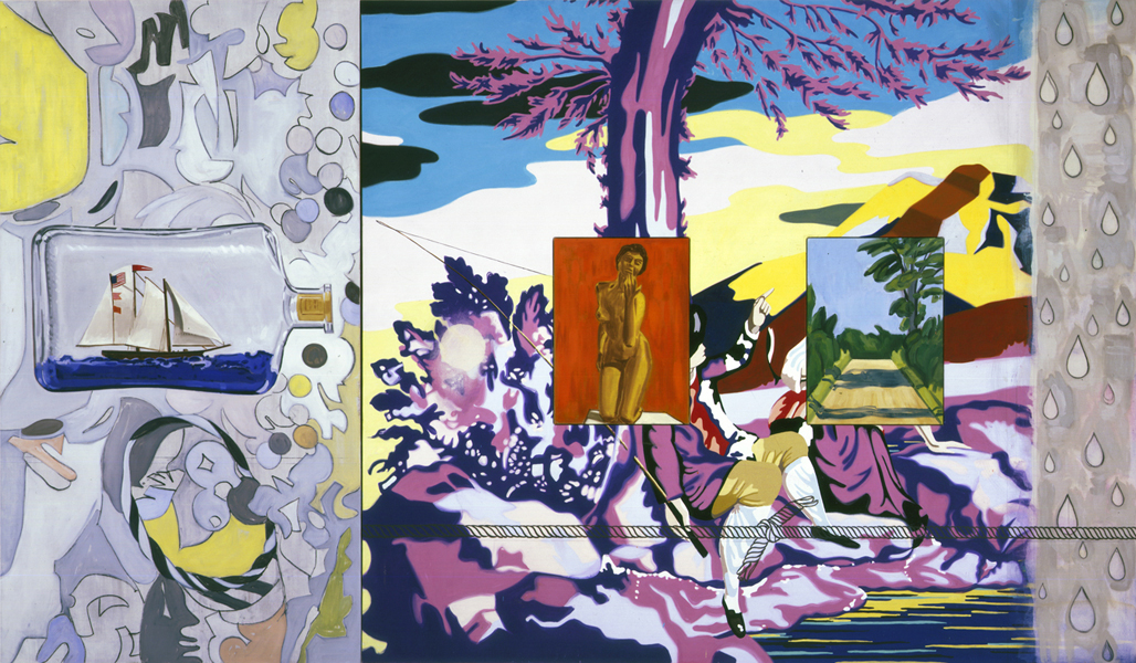 Picnic, 2001. Oil and acrylic on canvas and linen. 74 x 126 inches. All images © David Salle/VAGA at Artists Rights Society (ARS), NY. For permissions and requests see contact page. >