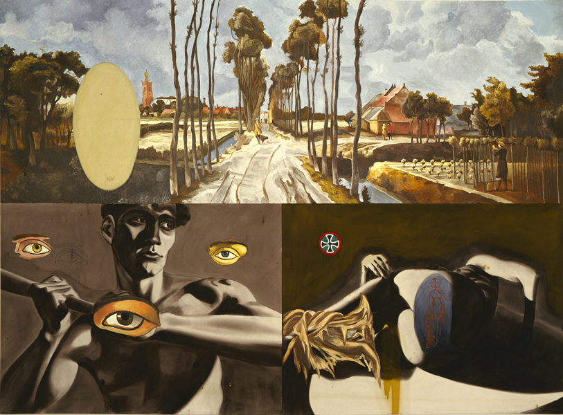 Landscape with Two Nudes and Three Eyes, 1986. Oil and acrylic on canvas. 102 x 139 inches. All images © David Salle/VAGA at Artists Rights Society (ARS), NY. For permissions and requests see contact page. >