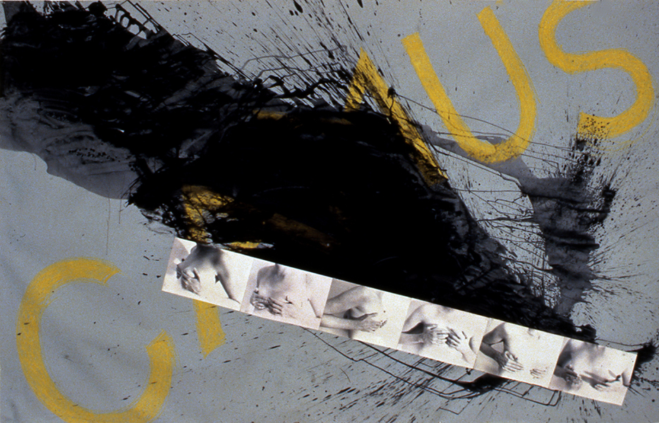 Untitled (Camus), 1976. Mixed media on paper. 108 x 156 inches. All images © David Salle/VAGA at Artists Rights Society (ARS), NY. For permissions and requests see contact page. >